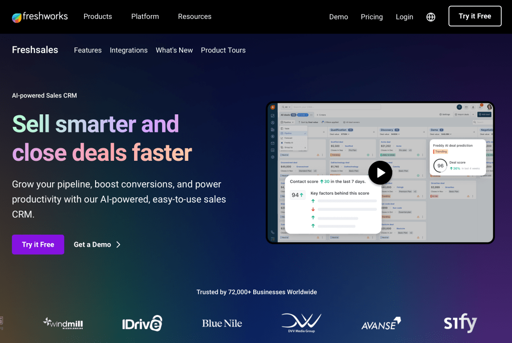 Freddy AI is de AI-assistent van Freshsales die verkoopteams helpt om verkoopkansen te voorspellen, leads te kwalificeren en inzichten te bieden voor effectievere verkoopstrategieën.